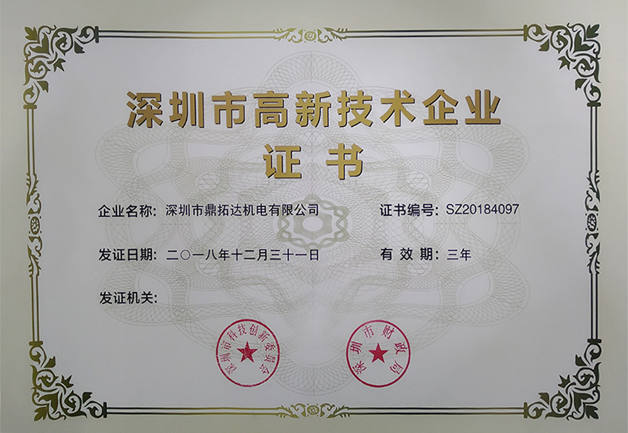 首頁->產(chǎn)品認(rèn)證->深圳市高新技術(shù)企業(yè)證書
